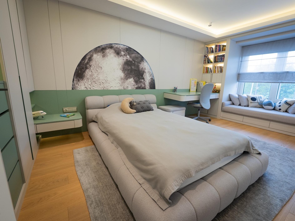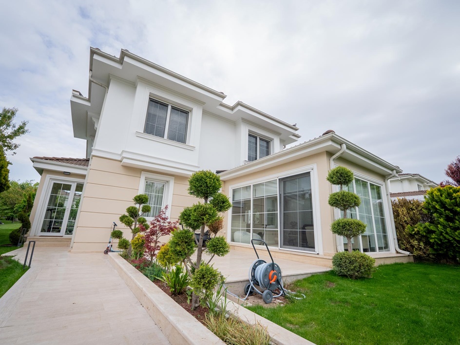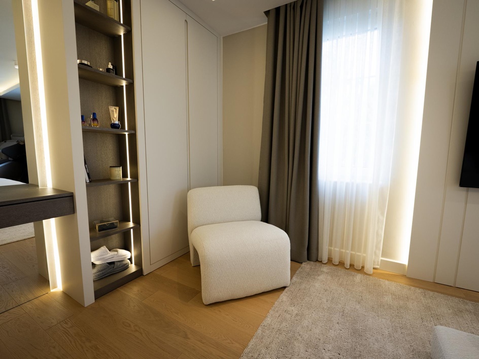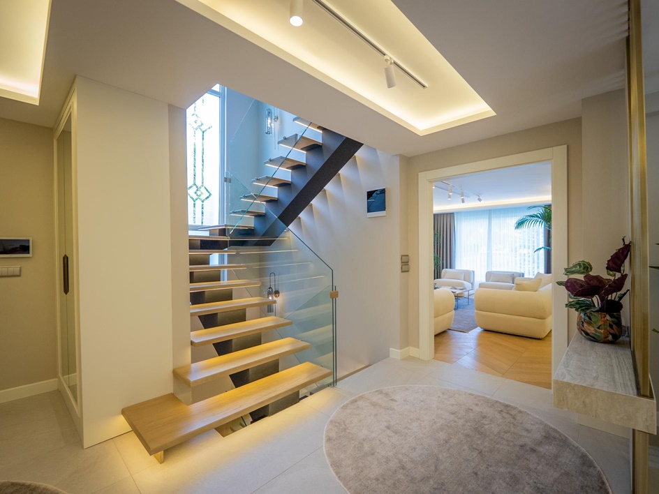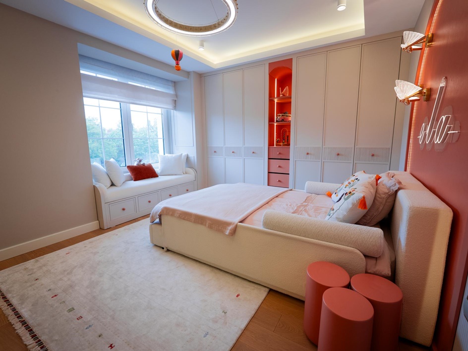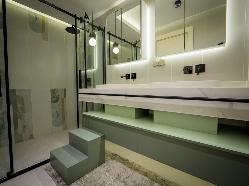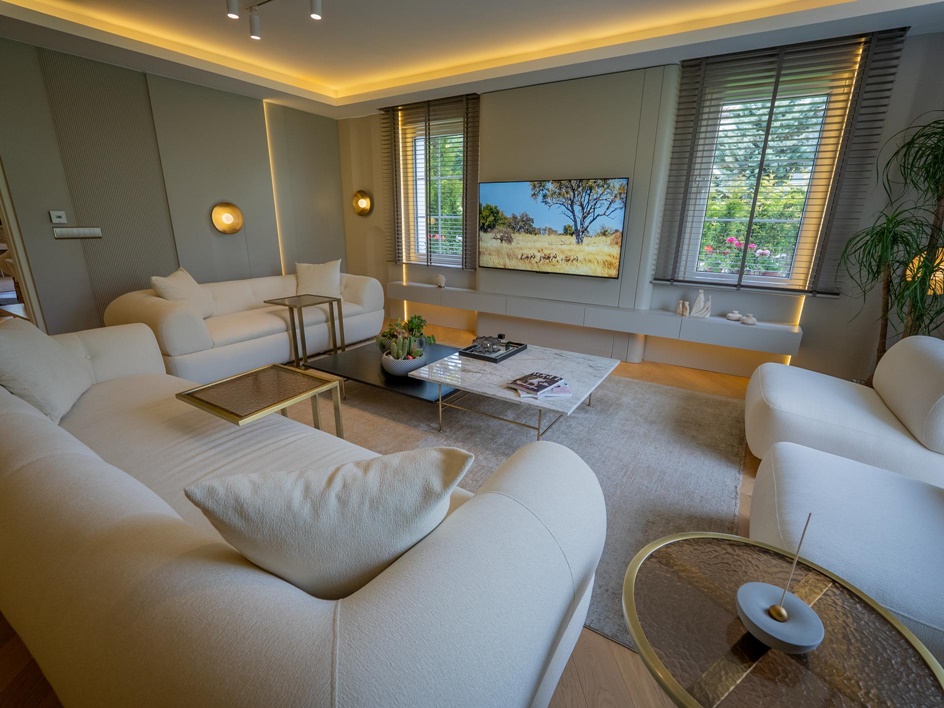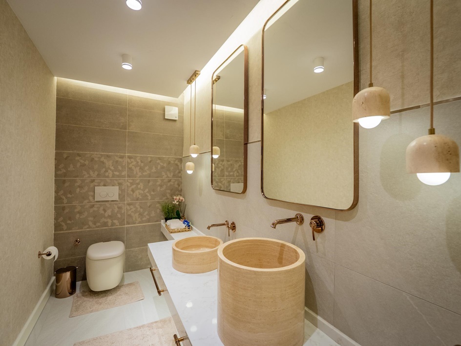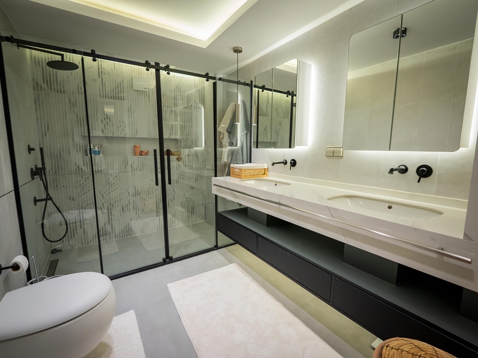 “Geniş hacimlerin dengeli oranlarla ele alındığı bu projede; zamansız renk paleti, güçlü aydınlatma kurgusu ve fonksiyonel planlama ön planda tutuldu. Özel yaşam alanlarından sosyal hacimlere kadar her detay, konforu ve bütünlüğü destekleyecek şekilde tasarlandı. Modern çizgiler, yalın ama karakterli bir villa yaşamı sunuyor.”