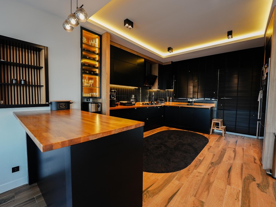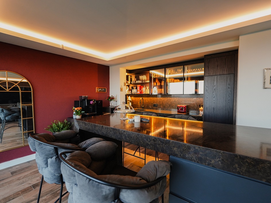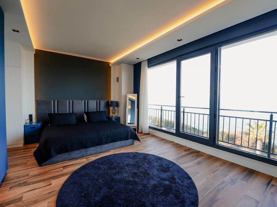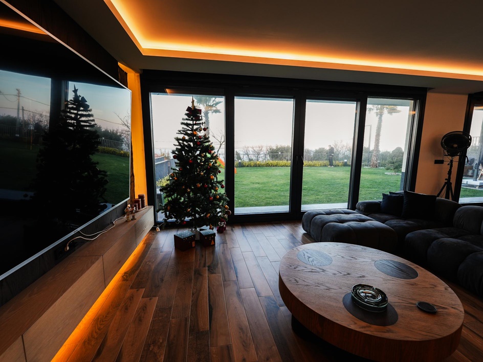 “Riva’nın denizle kurduğu güçlü ilişkiyi iç mekâna taşıyan bu villa projesi, doğal manzaranın tasarımın ana parçası haline getirilmesi hedefiyle ele alındı. Ahşap, koyu tonlar ve doğal taş yüzeyler; sıcak bir aydınlatma kurgusuyla dengelenerek sakin ama karakterli bir yaşam dili oluşturuldu. İç ve dış mekânlar arasında kurulan akıcı geçişlerle, manzaraya açılan, konforlu ve zamansız bir villa yaşamı kurgulandı.”